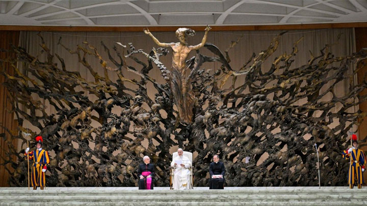 أيّها الإخوة والأخوات الأعزّاء، لنتعلّم نحن أيضًا أن نسلِّم أنفسنا لإرادة الآب الّذي يحِبُّنا، ونجعل حياتنا جوابًا على الخير الّذي نلناه. ففي الحياة، لا حاجة لأن يكون كلّ شيء تحت السّيطرة. يكفي أن نختار كلّ يوم أن نحبّ بحرّيّة. هذا هو الرّجاء الحقيقيّ: أن نعلم أنّه حتّى في ظلمة المحنة، محبّة الله تسندنا وتُنضج فينا ثمار الحياة الأبديّة.”