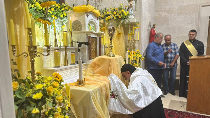 إن شاء الله يا أحبّائي يكون عيدًا مباركًا عليكم وبهذا العيد المبارك بهذه اللّيلة المقدّسة نُصلّي لبعضنا البعض، أنا أطلب صلاتكم لي ولإخوتي الكهنة، لشبيبتنا، علينا أن نُصلّي للشّبيبة حتّى تعيش بالفرح، بالنّعمة، بالسّلام. أنا أُقدّم هذا القدّاس على نيّتكم جميعًا، على نيّة كلّ أبناء الرّعيّة وأبناء المنطقة وأنا أعرف كم أنّ هذا المقام عزيز على قلوبكم هذا مقام تاريخيّ، نُصلّي لكلّ الأشخاص الّذين مرّوا هنا، والّذين خدموا وعَبَروا من هذه الدّنيا حتّى الرّبّ يعطينا نعمة أن نحافظ على إيماننا، ونشهد لإيماننا بحياتنا اليوميّة حتّى نُمجّده ونسجد لإسمه فقط، نسجد فقط لإسمه القدّوس ونُكرّم أُمّه مريم الطّاهرة، من الآن وإلى أبد الآبدين، آمين.”