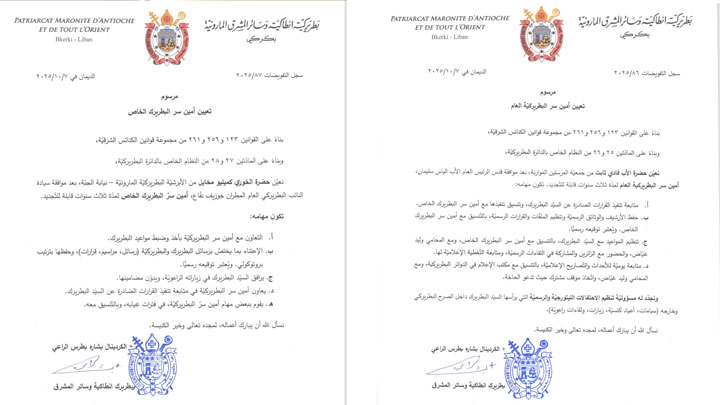 كما عيّن الخوري كميليو مخايل من الأبرشيّة البطريركيّة المارونيّة- نيابة الجبّة، بعد موافقة النّائب البطريركيّ العامّ المطران جوزيف نفّاع، أمين سرّ البطريرك الخاصّ لمدّة ثلاث سنوات قابلة للتّجديد.
