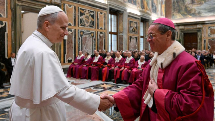 في لقاء هو الأوّل بينهم، استقبل البابا لاون الرّابع عشر، صباح الإثنين في القصر الرّسوليّ، أعضاء محكمة الرّوتا الرّومانيّة الرّسوليّة بمناسبة افتتاح السّنة القضائيّة، حثّهم خلاله على “حماية الحقيقة بصرامة ولكن بدون جمود، وممارسة المحبة بدون تقصير”، بارزين بذلك الحكمة القانونيّة المسيحيّة الحقيقيّة.
