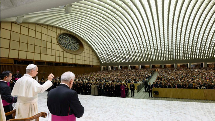 “نتابع قراءتنا لدستور المجمع المسكونيّ “كلمة الله” حول الوحي الإلهيّ، نتأمّل اليوم في العلاقة بين الكتاب المقدّس والتّقليد. ويمكننا أن نأخذ مشهدين إنجيليّين كخلفيّة لهذا التّأمّل. في المشهد الأوّل، الّذي تدور أحداثه في العلّيّة، يقول يسوع في خطابه الوداعيّ العظيم لتلاميذه: “قُلتُ لَكم هذه الأشياءَ وأنا مُقيمٌ عِندَكم. ولكِنَّ المُؤَيِّد، الرُّوحَ القُدُسَ الَّذي يُرسِلُه الآبُ بِاسْمي، هو يُعَلِّمُكم جَميعَ الأشياء ويُذَكِّرُكم جَميعَ ما قُلتُه لَكم. […] متى جاءَ هوَ، رُوحُ الحَقّ، أَرشَدكم إِلى الحَقِّ كُلِّه”. أمّا المشهد الثّاني فيقودنا إلى تلال الجليل، حيث يظهر يسوع القائم من بين الأموات لتلاميذه الّذين تملّكهم العجب والشّكّ، ويعطيهم وصيّة: “إِذْهَبوا وتَلمِذوا جَميعَ الأُمَم، […] وعَلِّموهم أَن يَحفَظوا كُلَّ ما أَوصَيتُكم به”. في كلا المشهدين، يتّضح الرّابط الوثيق بين الكلمة الّتي قالها المسيح وانتشارها عبر القرون.