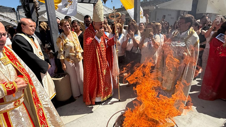 بعد استقبال كنسيّ وشعبيّ حاشد أمام الباب الخارجيّ لكنيسة أمّ المعونة الدّائمة- سان دييغو، في صباح أحد عيد الصّليب، افتتح بطريرك السّريان الكاثوليك مار إغناطيوس يوسف الثّالث يونان ناقوس الكنيسة.